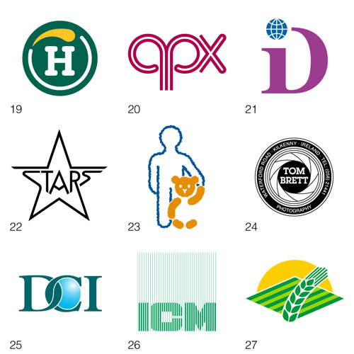 Gallery: 1-4 Horse Sport Ireland - Corporate Identity. 5/6 Irish Limousin - Corporate Identity. 7/8 Kilkenny College - Image Revamp. 9/10 Soothe - Brand Identity & Packaging. 11/12 Hermitage Pedigree Pigs - Corporate Identity. 13/14 Environmental Protection Agency - Corporate Identity. 15/16 Garo Elektriska AB, Sweden - Corporate Identity. 17/18 Natures Oils - Brand Identity & Packaging. 19/20 Telecom Eireann - Corporate Identity. 21/22 ZimTrade, Zimbabwe - Corporate Identity. 23/24 Connolly’s Red Mills - Brand Identity & Packaging. 25 John Paul Construction - Corporate Brochures. 26 Eye Sport Solutions - Tennis Training Mat. 27 Tretorn - Tennis Ball Packaging. 28 Kilkenny Design Workshops - Annual Report. 29 Institute of Physical Therapy and Applied Science - Corporate Identity & Promotional Material. 30-32 Graphic Identifiers: 1 Pelias, Ireland. 2 Slieve Bawn Handcraft Cooperative, Ireland. 3 Kilcarra Yarns, Ireland. 4 Angelus & Co. Furniture, Barbados. 5 BHP Laboratories, Ireland. 6 Castle Arch Pottery, Ireland. 7 Bach, Ireland/Switzerland. 8 HydronicX, Ireland. 9 Midland Forecourt Operators, Ireland. 10 Mashonaland Irish Association, Zimbabwe. 11 Global Brands, Egypt. 12 Cospoir, The National Sports Council, Ireland. 13 Middle East Bank, Jordan. 14 Office of Consumer Affairs, Ireland. 15 Embankment Plastics, Ireland. 16 SOS Kilkenny, Ireland. 17 LXL Distributors, Ireland. 18 Kilkenny Pottery, Ireland. 19 Hartecast, Ireland. 20 QPX Quality & Productivity Consultancy, Ireland. 21 Dowling International, Ireland. 22 Stars Hosiery MFG, Jordan. 23 Thurles Child Care Forum, Ireland. 24 Tom Brett Photography, Ireland. 25 Development International Consultants, Ireland. 26 ICM Computer Systems, Ireland. 27 Kilroy Agri, Ireland.