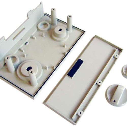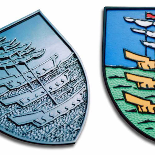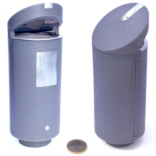 Gallery: 1 3D prints UV curing. 2 3D printed parts coming off sterolithography machining. 3 Model casings. 4 Model casings with working electronics for trials. 5 Wearable model electronic tag. 6 Simulation of metal casting. 7 Working latch prototype. 7 Scale models of seating for display. 9 Scale model using 3D printing plus hand finishing and assembly. 10 Scale model of street bin design. 11 Scale model of street bin cluster. 12 Full size parts for model of range cooker design. 13 Finished model for marketing evaluation. 14 Machine and hand assembled electronics casing. 15 Electronics casing inserted into working prototype. 16 Machined and hand assembled model before painting. 17 Painted model in finished working unit. 18 Machined, fabricated and hand finished set of lamp parts. 19 Lamp parts assembled and mounted to camcorder. 20 Full size mockup of coffee machine. 21 Bottle models for marketing evaluation. 22 Hand carved Waterford city crest. 23 City crest in-situ. 24 Abbott.